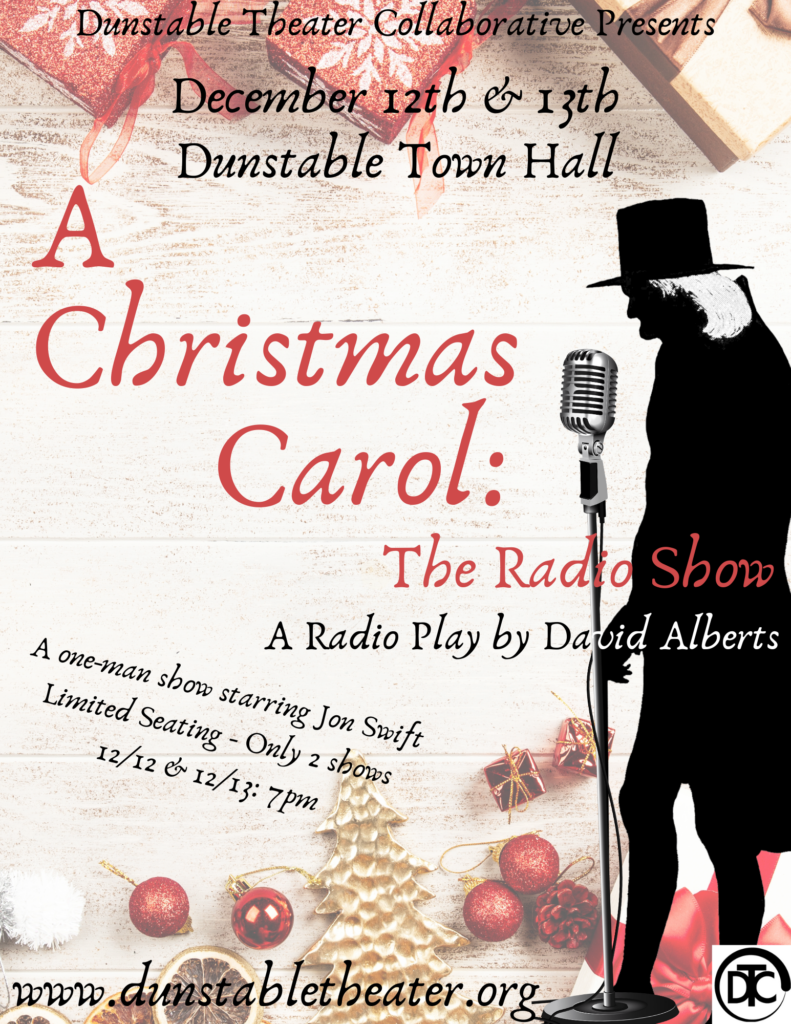 Dunstable Theater Collaborative presents its 5th annual A Christmas Carol: The Radio Show starring Jon Swift! 2 performances only – December 12 & 13 at 7pm.